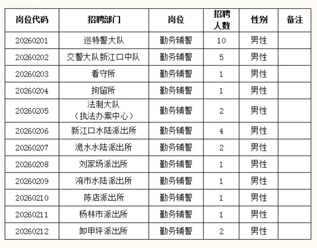 此次招聘共设12个岗位,计划招聘辅警31名。具体岗位及招聘计划、条件见下表。